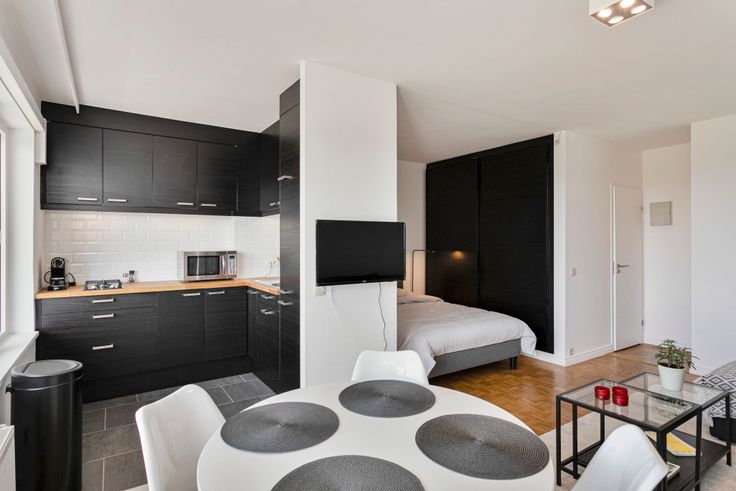 Te huur Gemeubelde studio, zuidgericht terras, parking & airco