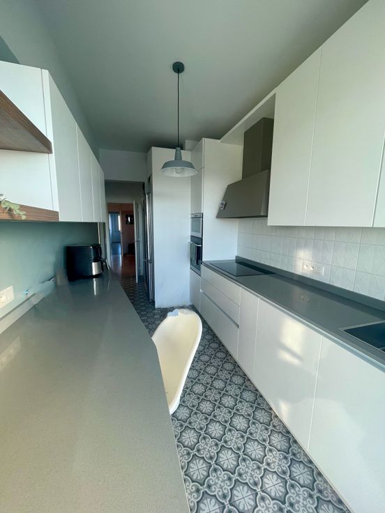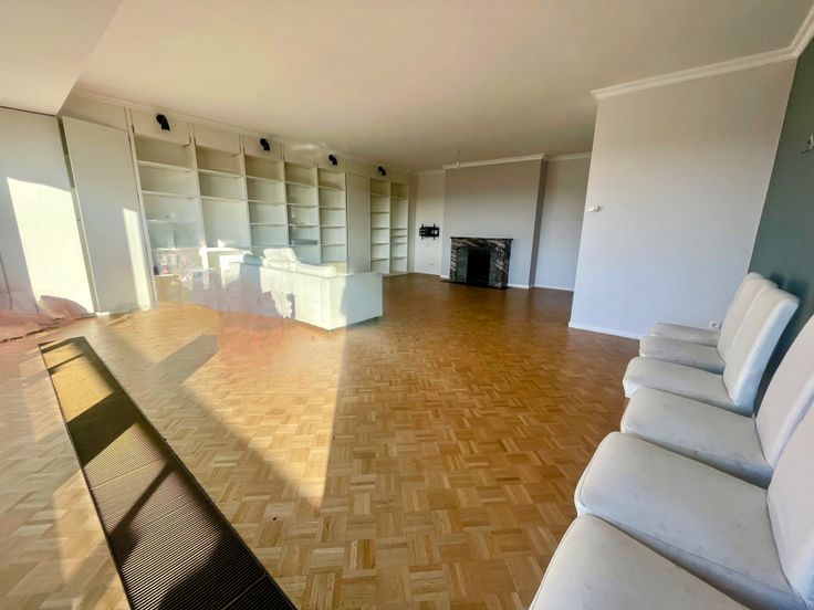 Bruxelles – Etterbeek – En face au parc du Cinquantenaire, dans un bâtiment élégant avec concierge au 6eme étage, grand appartement de +/- 170 m2 avec 3 chambres, plus deux terrasses (20 m2 en totale) avec une fantastique vue sur le parc. Il se compose de : hall d’entrée, placards, grand living de 50 m2 avec parquet d'époque, accès au premier balcon avec vue sur le parc, cuisine séparée avec deuxième accès à la terrasse et placards sur mesure. WC invités espace buanderie, hall de nuit avec trois chambres, une salle de bain avec douche, une toilette et une salle de bain principale complète avec baignoire. Six placards intégrés dans les couloirs et l'une des chambres. Cave Appartement rénové en profondeur en 2019. PEB C- (137 kWh/m2) Électricité confirme. Info et visites Alessandro Meschi 0496 20 22 63