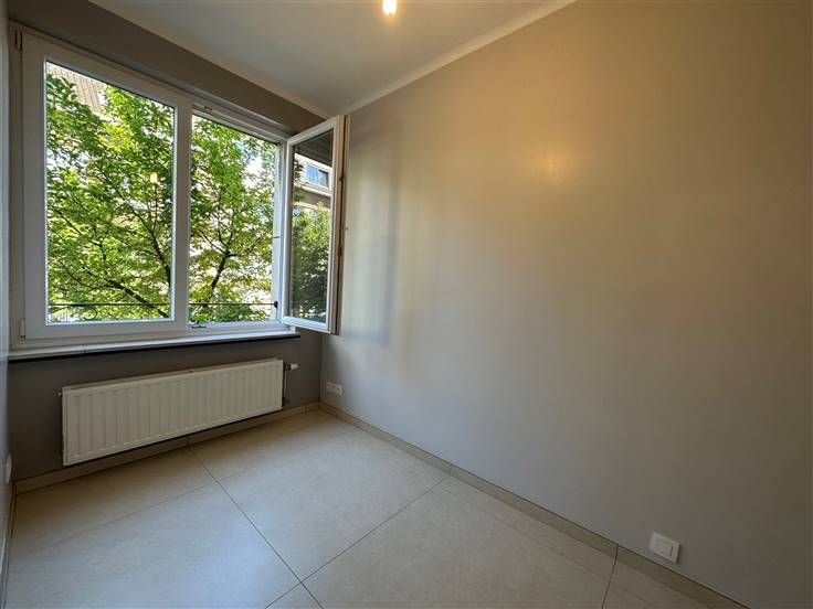 In de wijk Montgomery/De Broqueville ligt deze prachtige flat, volledig gerenoveerd en in 1e gebruik. Het is gelegen op de eerste verdieping van een klein gebouw in een rustige woonwijk - De flat heeft een prachtige tuin met fruitbomen en bloemen - Een prachtig uitgeruste design keuken geeft toegang tot het terras en de tuin - Een ruime slaapkamer aan de achterzijde en een 2e kleine slaapkamer of studeerkamer aan de voorzijde - Lichte woonkamer van +/- 30 m2 - Op de begane grond: 2 aangrenzende kamers voor een kantoor of atelier - Een aparte wasruimte en een kelder - PEB = E Garage: 150€.