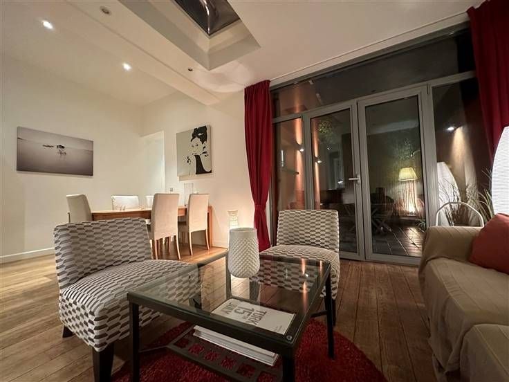 Sorry er is geen nederlandse vertaling beschikbaar. Proche de Flagey et du Parlement européen très bel appartement contemporain & spacieux de +/- 100 m2 + jolie terrasse de 15 m2 - Entièrement meublé- 2 chambres -cuisine américaine super équipée - salle de bains - Beau séjour avec accès à la terrasse - buanderie équipée privative - Très lumineux et calme -cave et local vélo. PEB : F