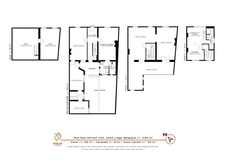 Sous-sol : caves de +/- 50 m2.