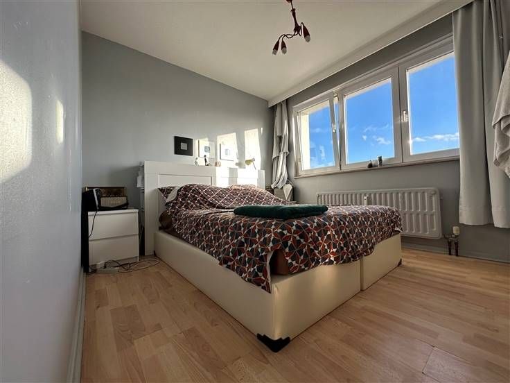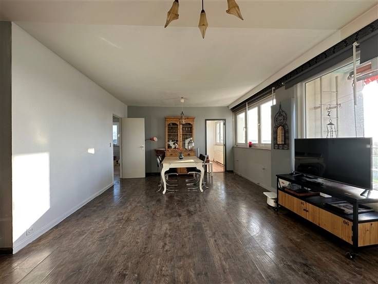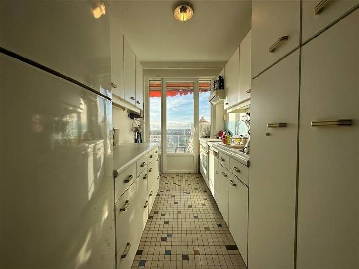 UCCLE, vlakbij Stalle. Op de 11e verdieping van een gebouw uit 1960, een echte oase van rust; een appartement met twee slaapkamers met een totale oppervlakte van +/- 75 m2 versterkt door een mooi terras van 8 m2 aan de voorgevel. Indeling: inkomhal - Woonkamer van +/- 30 m2 - Aparte half ingerichte keuken - Een eerste slaapkamer van +/- 17 m2 - Badkamer - Aparte wc - Een tweede slaapkamer van 15m2 - Een kelder op niveau min één - Dubbele beglazing - Centrale verwarming op gas - Standaard lift - Het condominium heeft verschillende niet-toegewezen parkeerplaatsen - PEB = C+.