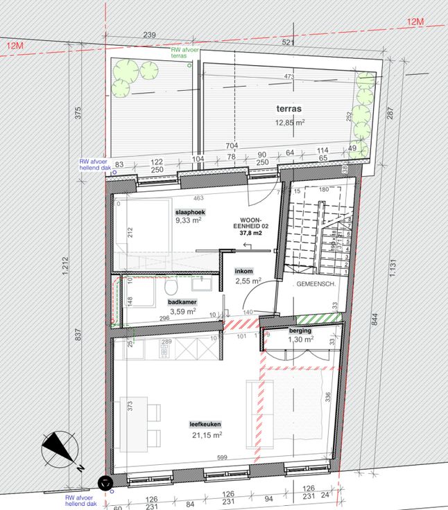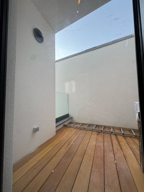 Het appartement op de eerste verdieping bestaat uit een sfeervolle woonkamer met open keuken, een gezellige slaapkamer, badkamer met regendouche en een terras. Extra’s omvatten een private berging van 4 m² in de kelder en een gedeelde wasruimte met Siemens wasmachine en droogkast.