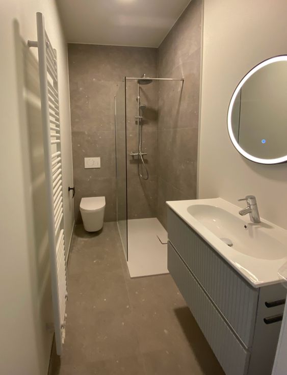Duitse hyperuitgeruste kwaliteitskeuken met inductiekookplaat, oven, magnetron en een koelkast met diepvriesvak (Bosch en gelijkaardig). De badkamer is voorzien van een luxe regendouche en hoogwaardig sanitair van Grohe.