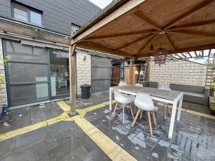 L’agence immobilière STRAZZERI’MMO vous présente cette jolie maison rénovée et habitable de suite comprenant 3 ch, parking, jardin aménagé avec auvent, terrasse, étang et piscine, située dans une voie sans issue à Saint-Vaast proche de toutes commodités (transports, commerces, écoles,..). Emplacement stratégique bénéficiant d’un accès aisé en voiture et rapide vers les grands axes. Composition au rez-de-chaussée : entrée (4m2) avec WC séparé et lave-mains, séjour (35m2) avec baie-vitrée, cuisine équipée (11m2) avec four, taque, hotte, évier, lave-v, MO et machine à café, buanderie (7m2). A l’étage : hall de nuit vers 3ch (10 et 2x11m2), et SDD (5m2) avec WC, douche, m-lavabo et extracteur. Ext. : avant-cour, parking, jardin aménagé avec terrasses, piscine, étang et abri. FAIRE OFFRE 225.000 > EUR sous réserve d’acceptation des propriétaires. Divers : chassis PVC DV, chauffage via pellet (possibilité de gaz), électricité non conforme, PEB cat. « D ». RC 485 EUR. Surface selon PEB (plancher) : 116m2. Descriptif à titre informatif et non contractuel.