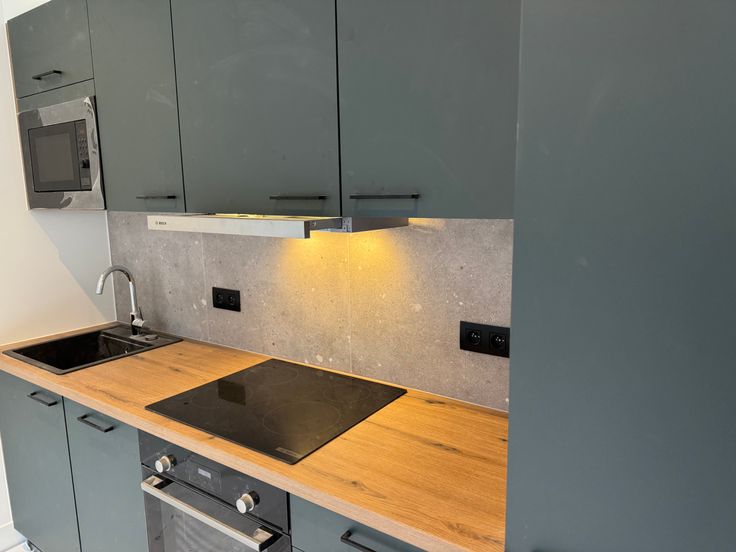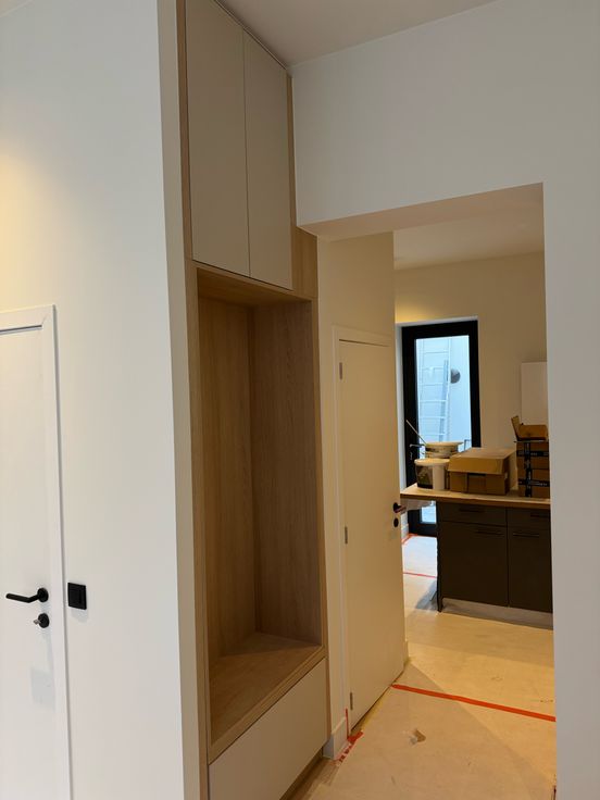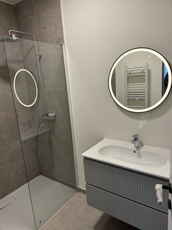 De keuken is uitgerust met een Duitse kwaliteitskeuken met inductiekookplaat, oven, magnetron en een koelkast met diepvriesvak (Bosch en gelijkaardig). De badkamer is voorzien van een luxe regendouche en hoogwaardig sanitair van Grohe.