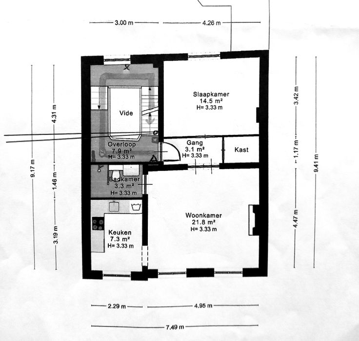 Bestaande uit: 1 slaapkamer, leefruimte, bergruimte, keuken, badkamer en inkomhal.
