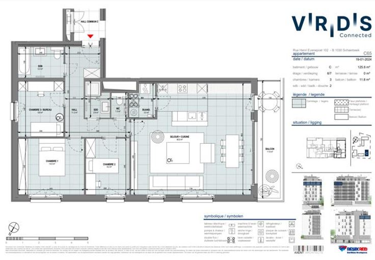 TEL: +32.2.315.51.73 / EMAIL: viridis@weinvest.be We Invest is trots om het Viridis-project te presenteren. Gelegen in het hart van Mediapark, op gelijke afstand van de Europese Wijk en de NAVO, bevind je je in de onmiddellijke nabijheid van talrijke openbaarvervoermogelijkheden van STIB en De Lijn. Je geniet ook van een vlotte toegang tot de Ring en de snelweg naar Luik, en profiteert van de nabijheid van veel winkels, restaurants en andere voorzieningen (scholen, crèches, enz.). Dit gloednieuwe appartement van 126m², gelegen in een gebouw met een lift, bestaat uit: een aparte WC, 2 badkamers, een open keuken die verbonden is met de woonkamer, 3 slaapkamers en een wasruimte. Je zult ook genieten van een aangenaam terras. Technisch gezien is het appartement uitgerust met een individuele warmtepomp en vloerverwarming, dubbele beglazing en een ventilatiesysteem. Naast een kelder is er toegang tot een fietsenstalling. De huur van een parkeerplaats is mogelijk (optioneel: €100). In het hart van het project kun je genieten van een volledig autovrije groene ruimte, weg van de drukte van de stad. PLANNEN: https://demo.vision-360.be/besix/ Huurprijs: €1.750/maand Voorschot kosten: €140/maand (voor gemeenschappelijke kosten + onderhoud van de ketel en ventilatiesysteem) EPB: B+ Onmiddellijk beschikbaar – mis deze kans niet! Wil je voor de feestdagen verhuizen en een prachtig cadeau onder de kerstboom? Met de code "Best Wishes" biedt Viridis elke huurder een IKEA-bon van €500