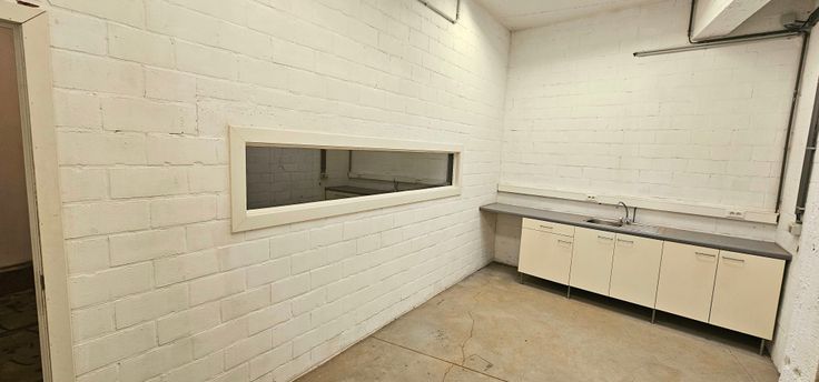 IBetonnen vloer en industriële verlichting door het hele pand.