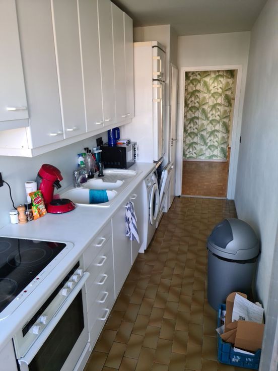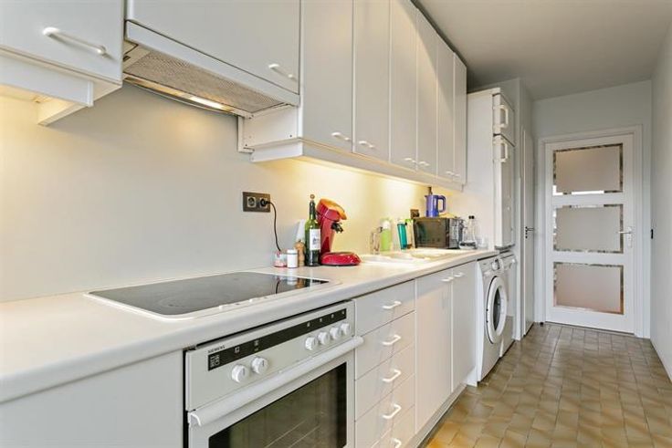 Het lichtrijke app met een bewoonbare opp. van 80m2 bevindt zich op de 2e verd. van een rustig, goed onderhouden appartementsgebouw met conciërge. Je komt binnen via een inkomhal met ingemaakte vestiaire verder een ruime living met parket, de ingerichte keuken is voorzien van koelkast met diepvries, keramische kookplaat met oven, vaatwasmachine, dubbele spoelbak en aansluiting voor een wasmachine.