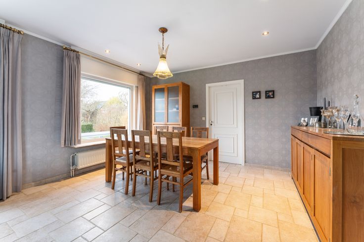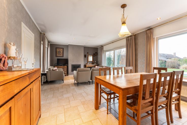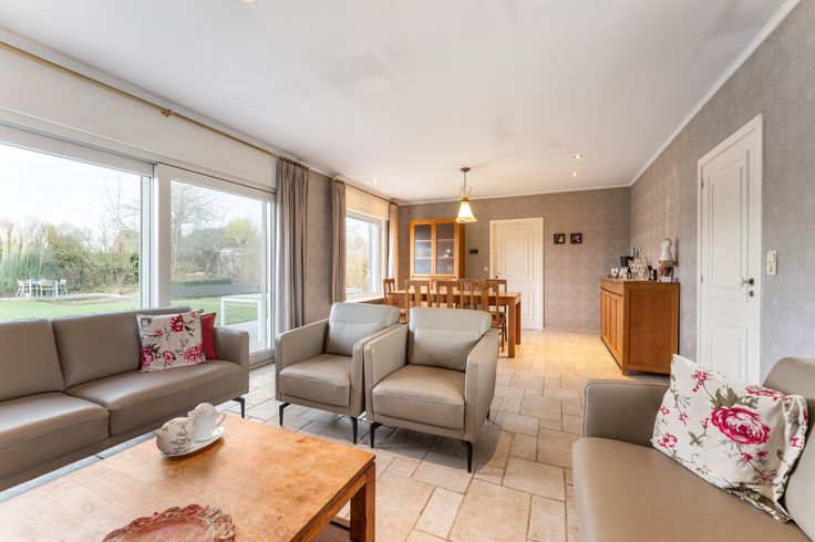 Deze verzorgde en centraal gelegen bungalow op 960m2 bestaat uit: inkomhal met toilet, gezellige living met houtkachel, ingerichte keuken (met fornuis, oven en vaatwasmachine), berging bij de keuken, badkamer (met lavabo, douche en ligbad), 3 slaapkamers, garage met automatische poort, zolderverdieping waar nog extra slaapkamers kunnen gemaakt worden en prachtige tuin met diverse terrassen, tuinhuis en vijver.