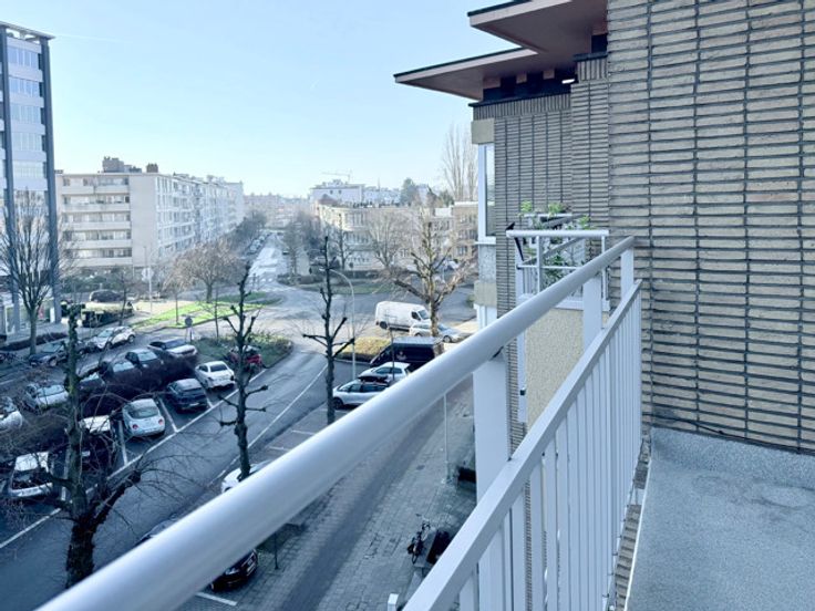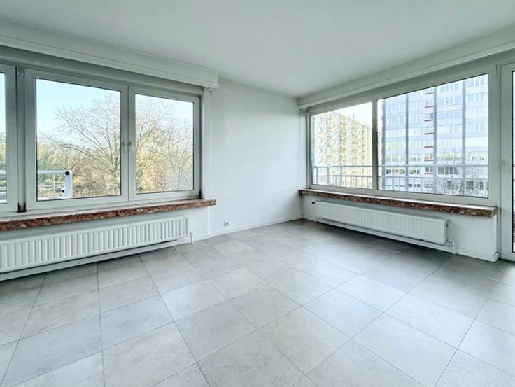 2 slaapkamer appartement 90m2 Topfloor met 180° zicht op Sterckshof Deurne. Gerenoveerd gebouw van 1960 met drie gevels in natuursteen en terrassen. Gelegen op de 4° verdieping beschikt over twee gelijke en ruime slaapkamers, een badkamer, apart toilet, een aparte ingerichte keuken en een ruime living met terras en parkzicht. Op het gelijkvloers een kelderberging en een autostaanplaats aanhorig het appartement.
