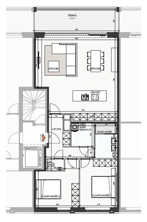 Zo ziet het appartement er uit op de 2e verdieping: