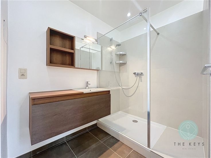 EXCLUSIVITEIT THE KEYS - AUDERGHEM / Saint-Julien - Dicht bij alle voorzieningen (winkels, openbaar vervoer, hoofdwegen, school) in een bijzonder goed onderhouden gebouw, APPARTEMENT van +/- 90m² op de GELIJKVLOERS. Het bestaat uit een inkomhal met vestiaire, gastentoilet, zeer lichte living van +/- 32m², volledig ingerichte open keuken van +/- 8,6m², slaapkamer 1 van +/- 12,7m² met en-suite badkamer (bad, wastafel, wasmachine aansluiting), momenteel wordt een 2e polyvalente ruimte omgebouwd tot een slaapkamer of bureau van +/- 12,6m² met en-suite badkamer met douche. Een KELDER is inbegrepen in de prijs en een GARAGE BOX (verplicht) wordt aangeboden op 40.000€. Schitterende hoge plafonds van 3,2m, mooie parketvloer, dubbele beglazing (2021), elektrische rolluiken (2017), recente keuken,... Er zijn verschillende werken uitgevoerd en reeds gefinancierd (waardoor de lasten en bijdragen aan het reservefonds zullen dalen), waaronder: Ingangstelefoonsysteem, bewakingscamera, isolatie van de voorgevel, containerafvalverzamelsysteem, dak, 4 condensatieketels op gas, warmtekrachtkoppeling, warmtepomp, voltaïsche panelen, enz. Gemiddelde servicekosten van +/- 283€/maand (gemeenschappelijke ruimtes, conciërge, verwarming, koud & warm water). EPC 299kWh/m² (F) ; 77kg CO² : EPC n° 0000681741-01-7