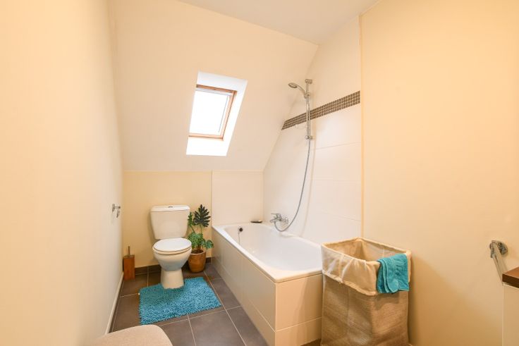 Op de eerste verdieping bevinden zich twee slaapkamers, beide met ingebouwde kasten en Velux-daken, wat zorgt voor veel lichtinval. De kamers zijn voorzien van CV-radiatoren voor extra comfort. De ruime badkamer heeft een ligbad met mengkraan en douchekraan, een dubbele lavabo met een mooi lavabomeubel en een toilet.