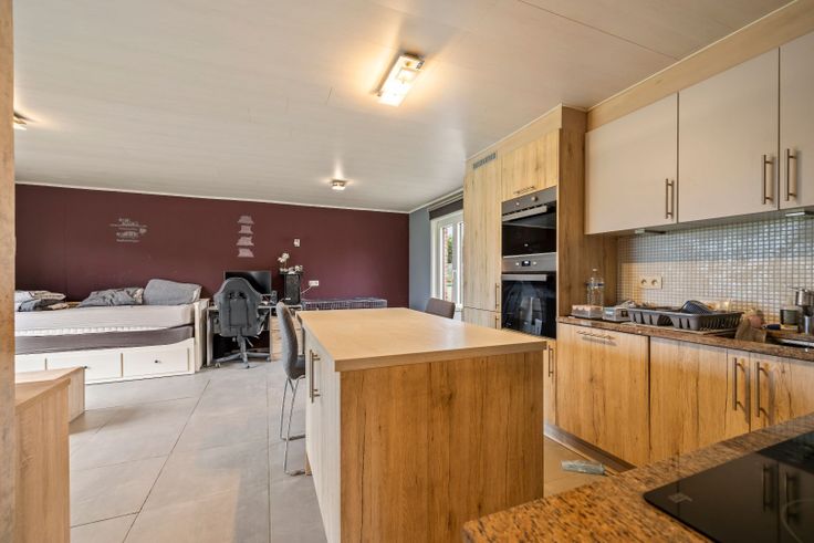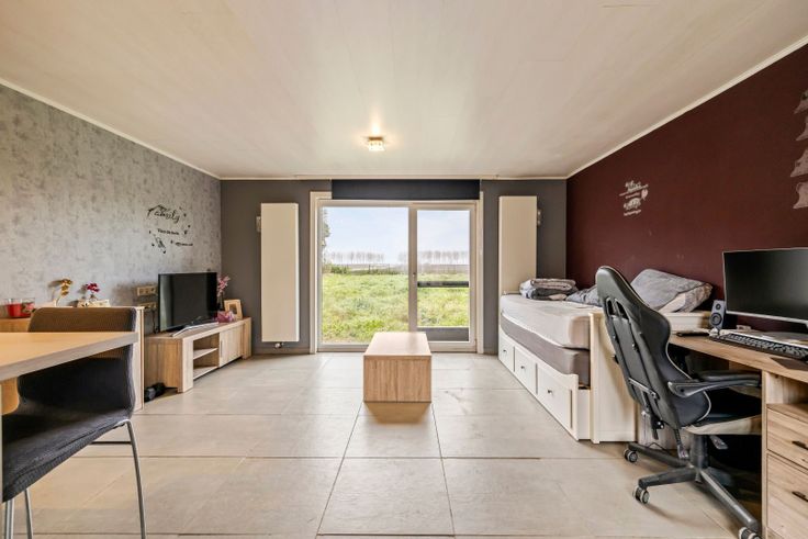 In de rustige Molenhoekstraat 18 te Meerdonk ligt deze ruime open bebouwing met een prachtig zicht op de polders. De woning biedt drie slaapkamers, een grote tuin en een volledig ingerichte, aparte studio in het bijgebouw, ideaal voor wie een gescheiden woonruimte wenst. Bij binnenkomst leidt de inkomhal u naar de lichtrijke leef- en eetruimte, waar u geniet van een overvloed aan daglicht. Deze ruimte sluit aan op de open keuken, die volledig is geïnstalleerd en voorzien van een extra eethoek. Op de bovenverdieping bevinden zich drie ruime slaapkamers en een badkamer, wat de woning perfect maakt voor gezinnen. Naast de woning bevindt zich een aparte studio die beschikt over een volledig uitgeruste badkamer, keuken, gastentoilet, slaapkamer en een eigen verwarmings- en elektriciteitssysteem. Deze studio creëert de mogelijkheid om volledig zelfstandig te wonen of biedt ruimte voor een hobbyruimte of gastenverblijf. De grote tuin biedt voldoende ruimte voor ontspanning en activiteiten, en de oprit achter de poort heeft plaats voor maar liefst drie auto’s. Met het uitzicht op de polders en de nabijheid van fiets- en wandelroutes is dit een ideale plek voor natuurliefhebbers. Met een EPC-score van C is er geen renovatieplicht op de woning. Bent u op zoek naar een ruime woning in een rustige, groene omgeving met extra woonmogelijkheden? Aarzel dan niet en vraag een bezoek aan via het nummer 052 46 38 03.