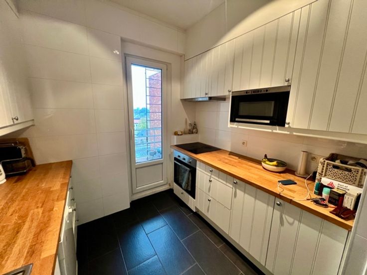 BEZOEKMOMENT DONDERDAG 23/1 TUSSEN 18.00U EN 18.30U ZONDER AFSPRAAK Prachtig gerenoveerd appartement in een aangename residentie met conciërge, 2 kelderbergingen, garagebox en slechts één woongedeelte per verdieping. Het appartement is gelegen op een toplocatie met een uniek zicht van op de 8ste verdieping over het Albertpark. Via de inkom komen we terecht in de ruime hal voorzien van een open zicht over de lichtrijke leefruimte met aansluitend de halfopen keuken. De leefruimte geniet van een enorme oppervlakte met prachtige eet- en zithoekmogelijkheden. De keuken zelf werd vernieuwd en voorzien van de nodige moderne accenten in combinatie met het praktische element van ingebouwde kasten, ingebouwde toestellen, alsook koelkast, keramische kookplaat, vaatwasser, warmeluchtoven, combi-microgolfoven, .... Verder vinden we hier tevens een aparte berging, alsook een binnenterras. Opnieuw in de hal hebben we een open karakter alsook ingebouwde vestiairekasten en een apart gastentoilet. Aansluitend hebben we de 2 slaapkamers, alsook de badkamer met apart ligbad en lavabomeubel. Achteraan het gebouw vinden we nog een zeer aangenaam terras met een uitzicht dat rust uitstraalt. Een opportuniteit vlakbij alle verbindingswegen zowel naar, als uit het centrum. Voor info 0495 57 40 40 of tijl@heistimmo.be
