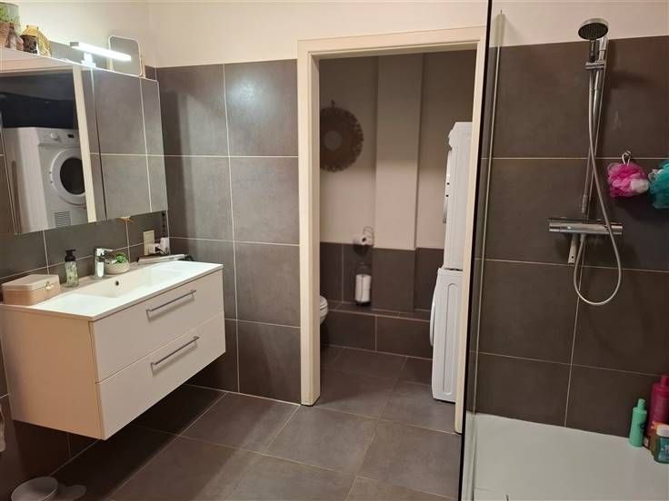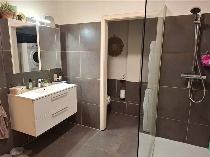 Sorry er is geen nederlandse vertaling beschikbaar. Au centre de Jambes, à proximité de toutes les commodités (bus, grands axes, centre ville de Namur à quelques minutes à pieds, administrations...), lumineux appartement de ± 60 m² situé au 3ème étage sans ascenseur d'une belle résidence. Composition : Entrée via cuisine semi-équipée (taques électriques, hotte + meubles), beau living de ± 25 m² avec placards, salle de douche avec douche italienne, toilette avec wc suspendu et emplacement machine à laver, une grande chambre de ± 16 m². Autres : châssis PVC double vitrage, chauffage central, points lumineux déjà placés, parlophone....Libre 01/04/2025. Prov. Charges: 125 euros (eau, chauffage, assurance incendie et communs) - PEB C (216 kWh/m².an - EP Total: 14634 kWh/an - n° 20190807005013)