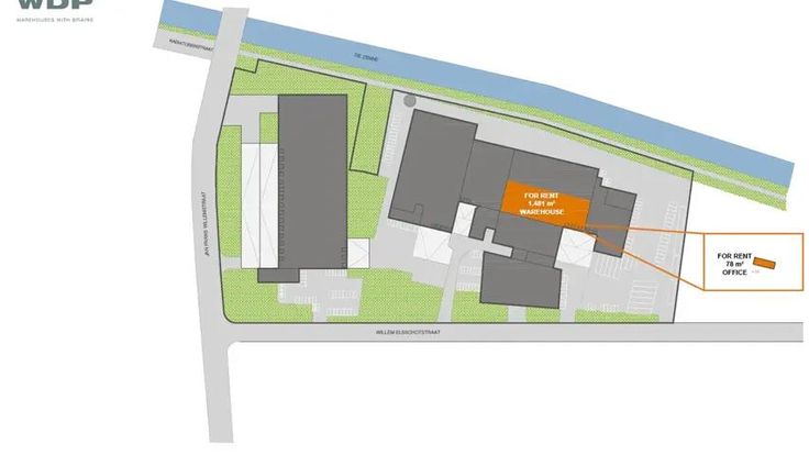 Magazijnruimte met kantoor te huur gelegen aan de Willem Elsschotstraat 1 in Vilvoorde. Dit pand biedt een magazijnruimte van ca. 3.300 m² en een aangrenzende kantoorruimte van ca. 445 m².