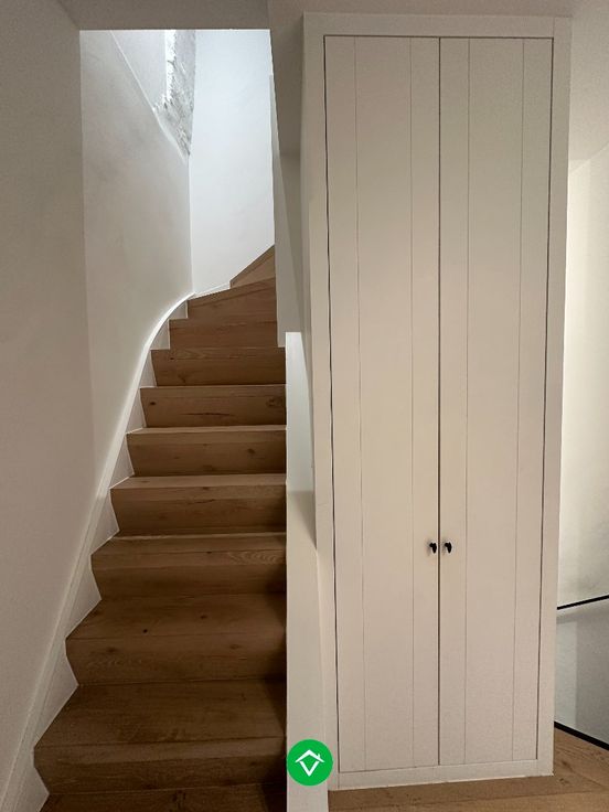 Op de tweede verdieping vinden we de hal met kasten, slaapkamer en dressing.