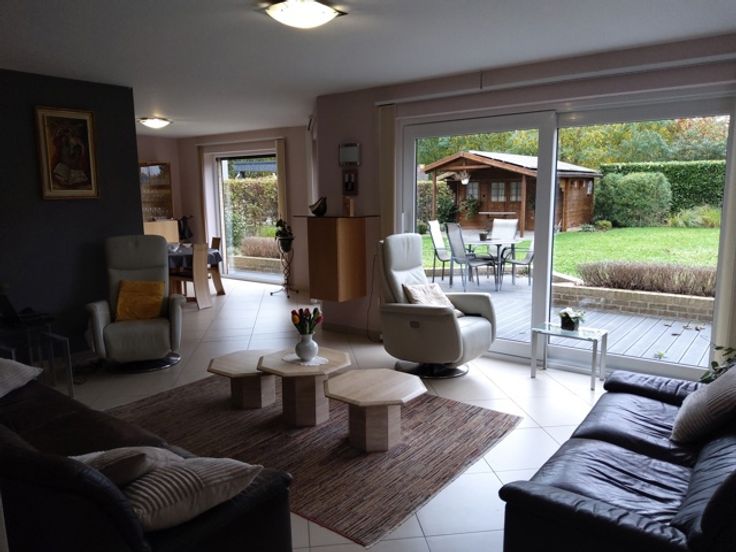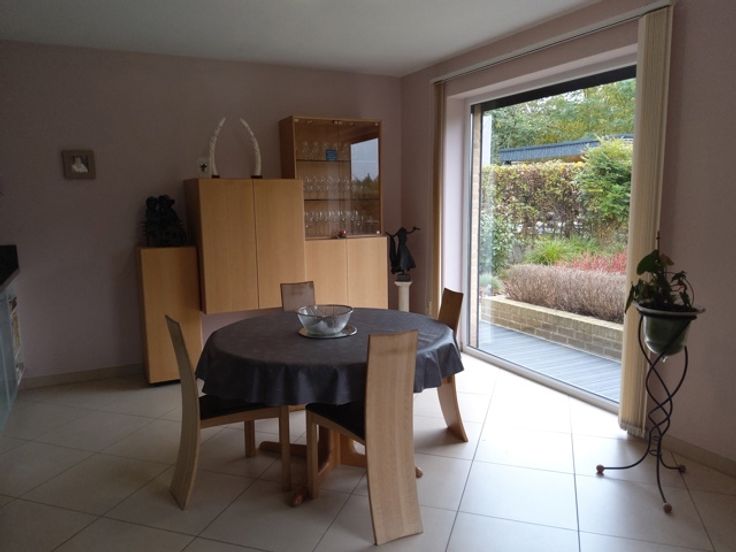 Ook de tuingeoriënteerde woonkamer biedt veel natuurlijk licht en heeft via de schuifdeur toegang tot de tuin. Genieten van de buitenlucht tijdens je maaltijd is zo perfect mogelijk. De goed onderhouden tuin, compleet met een tuinhuisje, is perfect voor tuinieren, ontspanning en extra opbergruimte (fietsen, grasmaaier...).