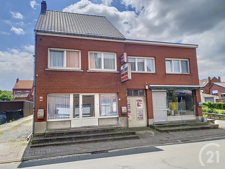 Rechts staat een grote woonst met een handelspand (3 huisnummers - 2 kadastrale nummers). De woning van 315m² heeft 4 slaapkamers, een leefruimte, een keuken, een badkamer, een leefruimte op verdieping, een zolder met uitbreidingsmogelijkheden en een grote achterbouw. Buiten is er een mooi terras.