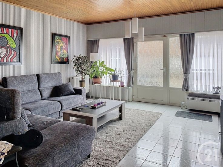 Links staat de eerste woning die momenteel verhuurd is en dewelke staat als half open bebouwing. Hier kan nog uitgebreid worden. De woning heeft 2 slaapkamers, woonkamer, keuken en badkamer.
