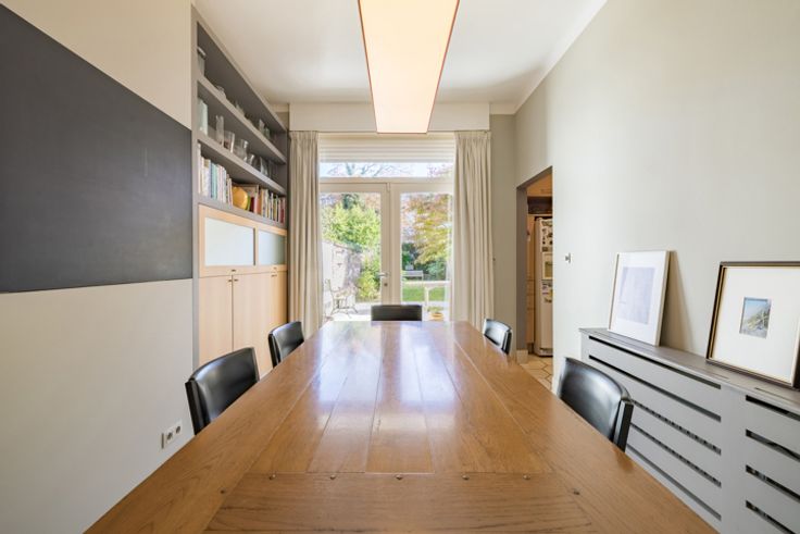 Dit mooie karaktervolle huis uit 1932, ontworpen door architect René Housiaux, ligt vlakbij de avenue Molière en niet ver van het Brugmannplein. Het heeft een voorgevel van 7 meter en een aangename tuin (+/- 3 ares 40). Het heeft veel historische kenmerken behouden. Ca. 450 m² leefruimte. Warme ontvangstruimten, super ingerichte keuken, bureau, 5 slaapkamers, badkamer, 2 douchekamers. EPC E