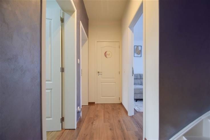 Deze gerenoveerde bel-etage woning beschikt over een bewoonbare oppervlakte van 140m² en is gelegen op een perceel van 3a 14ca nabij winkels, scholen, grootwarenhuizen, het openbaar vervoer en belangrijke verbindingswegen. De indeling is als volgt: op het gelijkvloers bevindt zich een inkomhal in keramische parkettegel (6,3m²), een vestiaire (1,9 x 3,5m) met een buitendeur en een berging-wasplaats (2,9 x 2m) voorzien van een toilet en een spoelbak. Op de eerste verdieping leidt de hal (1,1 x 3m) naar een gastentoilet met handwas (1,4 x 1,1m), twee woonkamers in laminaat (3,5 x 5,7m; 6,7 x 2,9m) en een keuken (5,5 x 2,5m) uitgerust met een fornuis op gas, dampkap, oven, microgolfoven, koelkast, diepvriezer, vaatwasmachine en een dubbele spoelbak met toegang tot een terras (2,3 x 1,1m). Op de tweede verdieping leidt de nachthal (1,1 x 2,5m) naar 4 slaapkamers (3,5 x 2,3m; 2,8 x 3,3m; 3,6 x 3,5m; 2 x 3,5m) en een badkamer (1,9 x 2,1m) voorzien van een inloopdouche, toilet en een enkele wastafel. Bovendien beschikt deze woning over een koer / terras (32,2m²) met een carport en een loods met zolderruimte (totale opp.: 215m²) voorzien van een automatische poort. Centrale verwarming op aardgas | regenwaterput 1.500l | kelder. Wenst u deze woning te bezichtigen? Kom dan gerust langs op onze BEZOEKDAG op woensdag 22 januari 2025, mits het maken van een afspraak. 015 711 000 - info@clavisvastgoed.be
