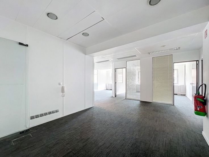 Het pand bestaat uit: een inkomhal met ruimte voor een receptie, een vergaderruimte van +/- 30 m2, vier gesloten kantoorruimtes (+/- 28, 28, 10 en 10 m2), een gesloten keuken die opnieuw moet worden ingericht, sanitaire voorzieningen met twee toiletten, een douche en een wastafel. Er zijn twee overdekte parkeerplaatsen beschikbaar.