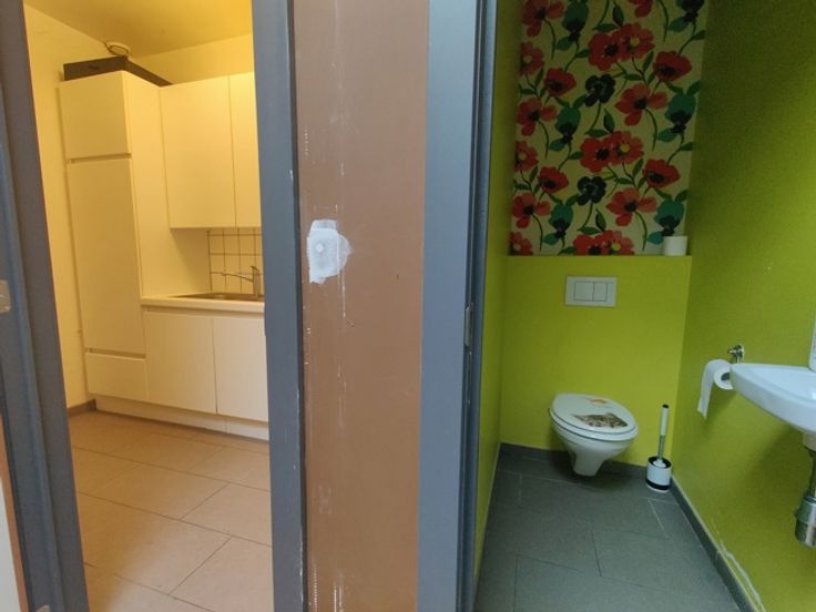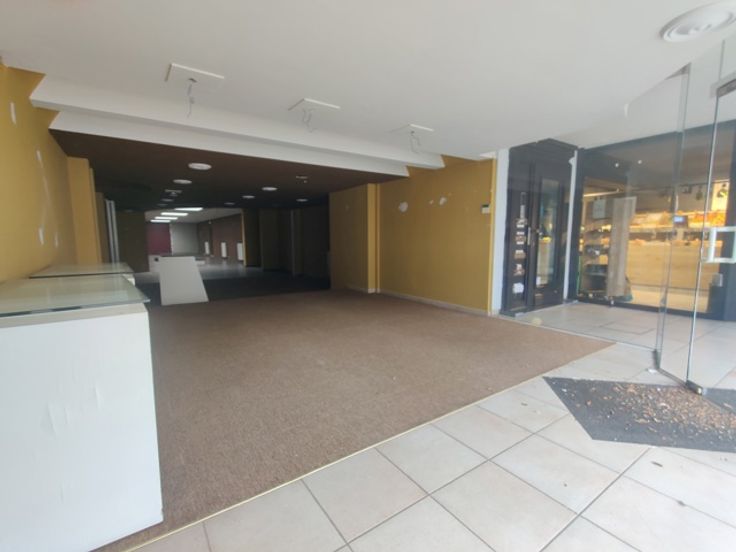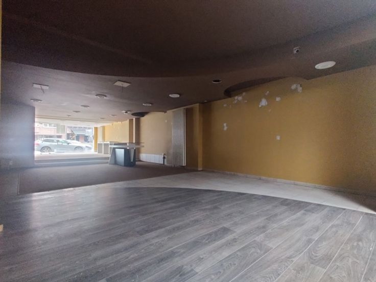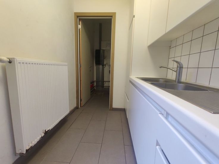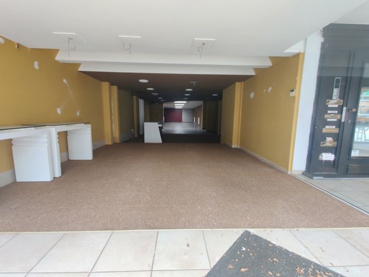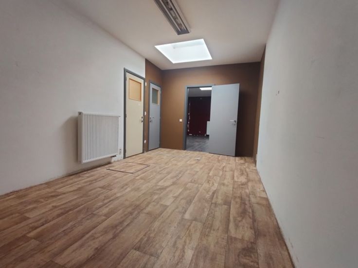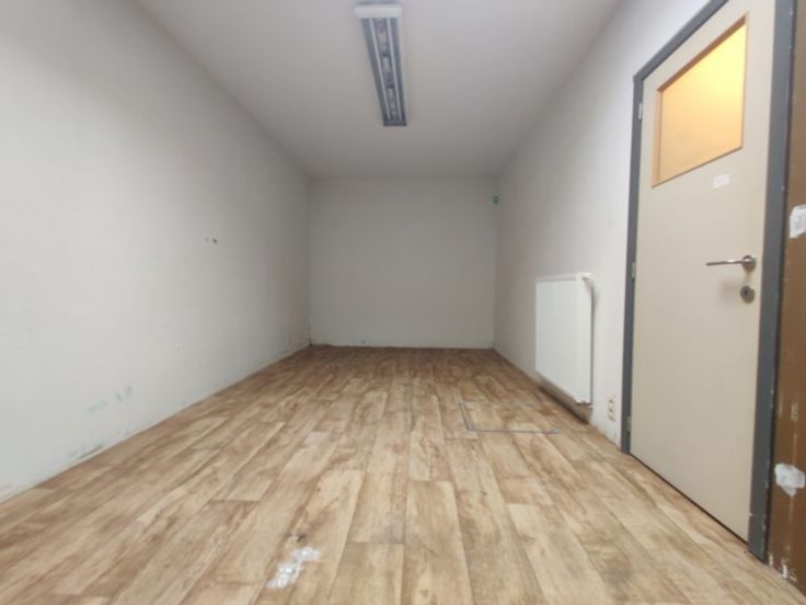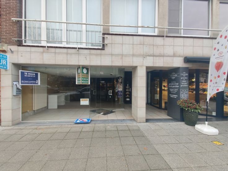 Ruim handelsgelijkvloers met veel lichtinval door een etalageraam van ca. 2,65m breed. Voorzien van een winkelruimte vooraan (ca. 18 x 5,75m) en een tweede ruimte achteraan (ca. 17 x 5,75m), momenteel opgedeeld in vijf aparte ruimtes. Achteraan bevindt zich een bergruimte van ca. 18m² met kitchenette, een wasplaats en een apart toilet. Ideaal voor winkel of kantoor.