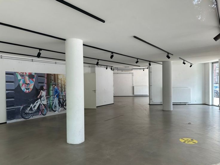 Door de enorme vitrine en de prachtige glaspartij geniet deze winkel van een uitstekende visibiliteit.
