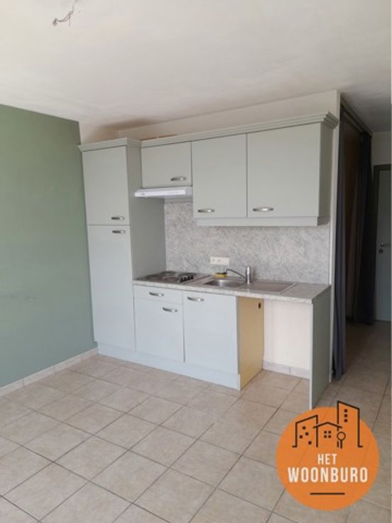 Studio nr. 3 (glvls vooraan in het midden) in goede staat omvattende: hall, living, keuken, slaaphoek, keuken met kasten, dampkap, kookplaat, badkamer met 1 lavabo, douche, WC, berging, garage voor 1 wagen.