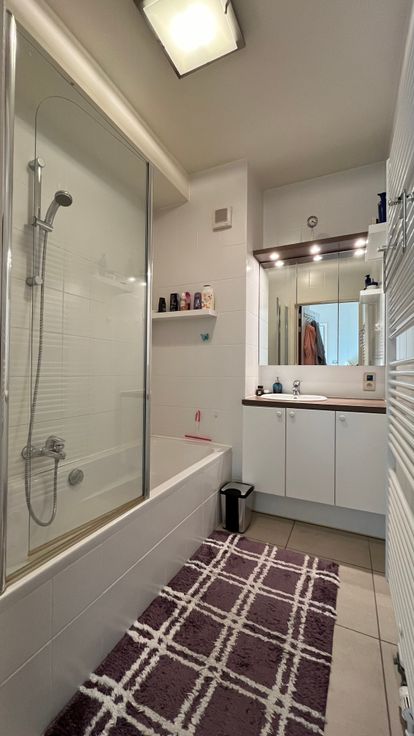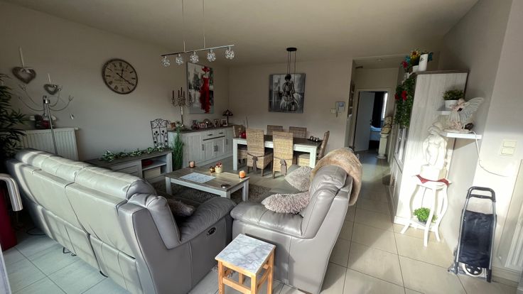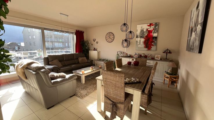 Het appartement heeft een ruime living met open keuken en aansluitend terras voorkant zuidgericht. Er zijn 2 slaapkamers, badkamer met bad/douche, apart gastentoilet, 2 bergingen en individuele garage op gelijkvloers. Het appartement is geschilderd en instapklaar, vrij vanaf 1/4/2025.
