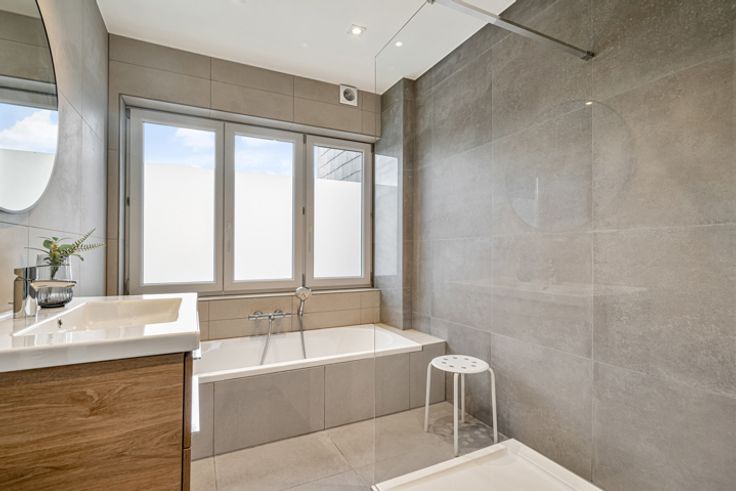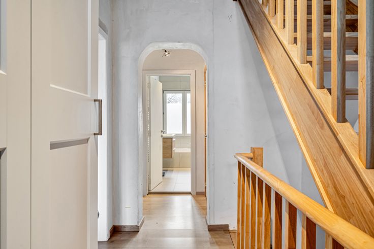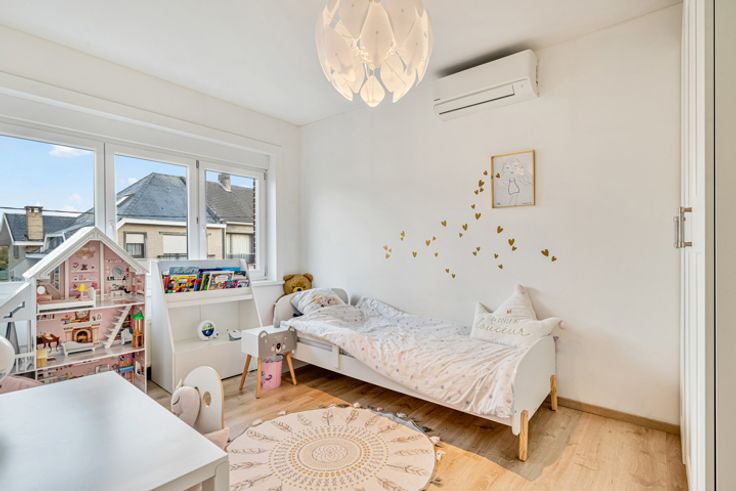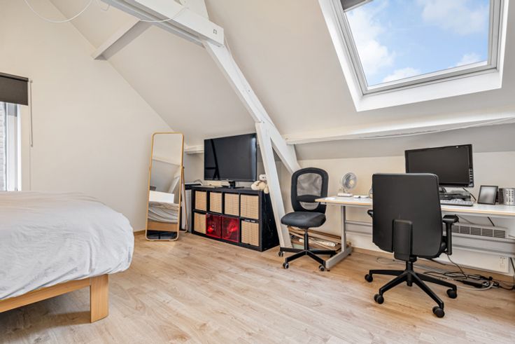 Op de 1e verdieping vindt u twee mooie slaapkamers en een splinternieuwe badkamer voorzien van hoogwaardige afwerking. Op de zolderverdieping een grote ouderkamer met extra ruimte voor bureau -en of opberg.