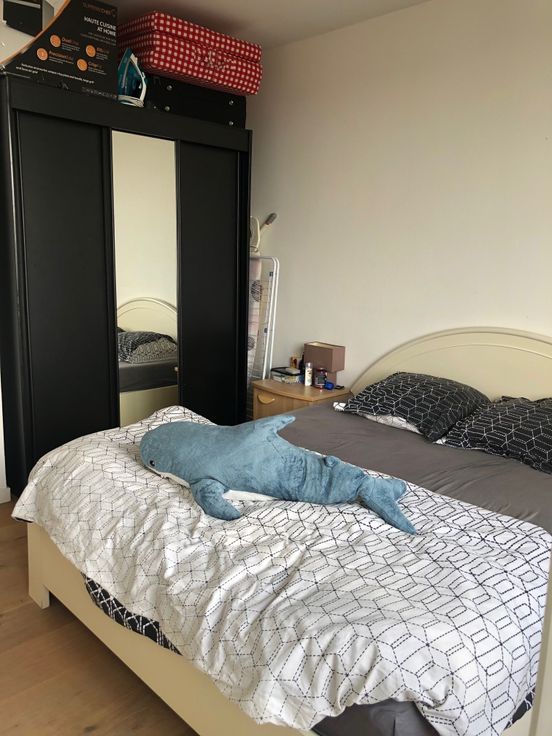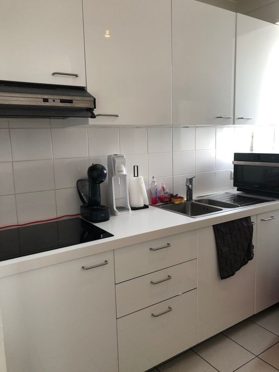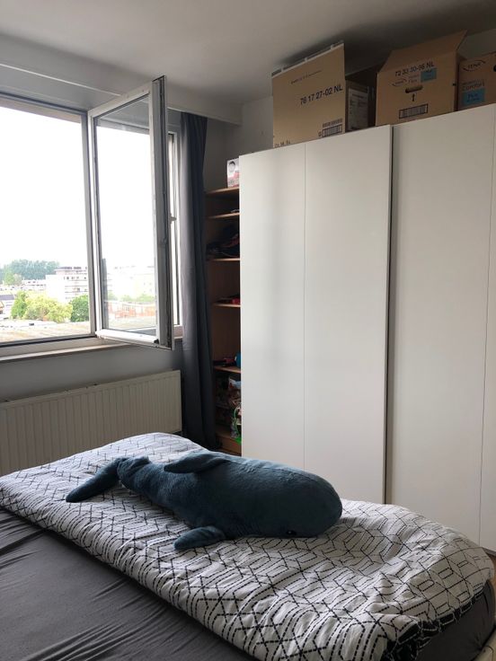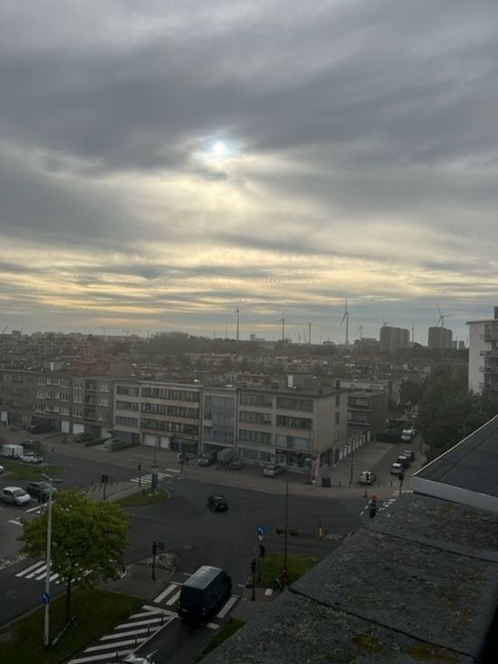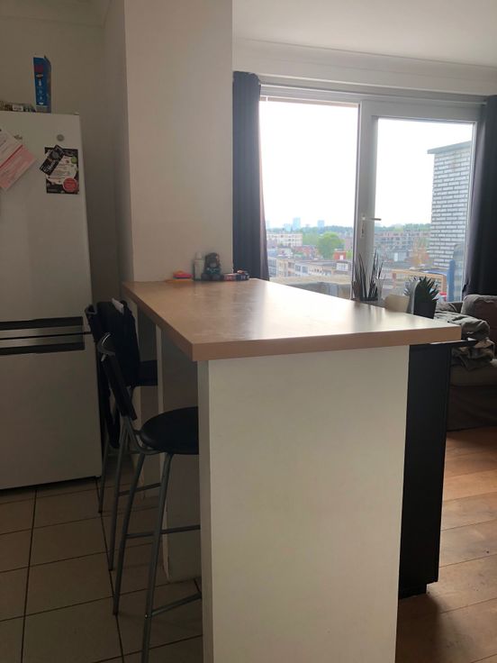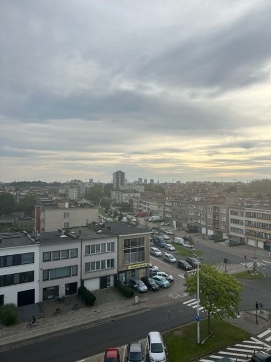 Zonnig appartement met inkomhal en woonkamer met open keuken die uitgeeft op een groot en zonnig terras. Vanuit het terras is er een heel mooi zicht over Merksem en Antwerpen. Er is 1 ruime slaapkamer en badkamer met douche en lavabo. Verder ook nog een afzonderlijk toilet. De vloer is parket en de badkamer en keuken zijn met tegels. De lift gaat tot het 5e verdiep en dan is het nog 1 verdiep met de trap naar boven. Ideaal als alleenstaande of koppel. Niet geschikt voor een gezin met kinderen. In de kosten is inbegrepen : het water, het onderhoud en de kosten van de gemeenschappelijke delen en het onderhoud van de verwarmingsketel.