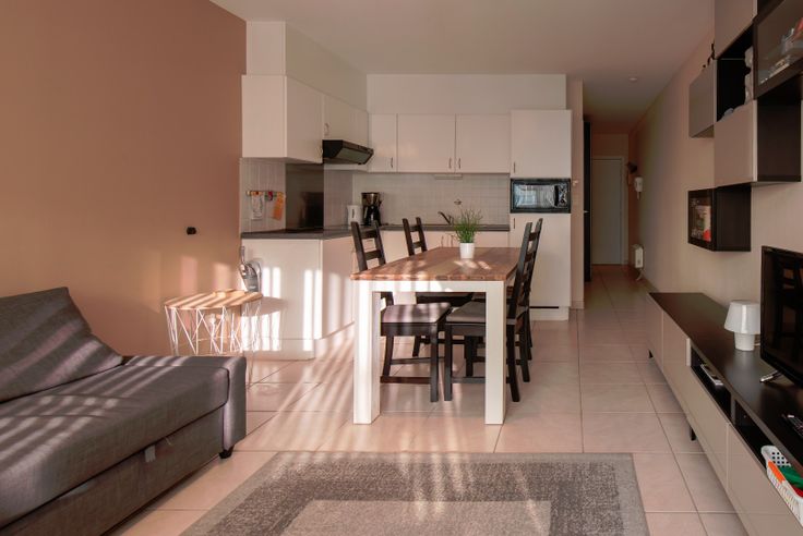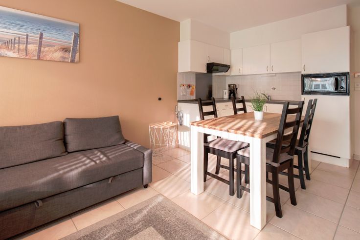 Lichtrijke, aangename studio gelegen op de vierde verdieping. Gezellige woonkamer met open keuken met alle modern comfort. Badkamer met ligbad, wastafel en toilet. Slaaphoek met stapelbed. Aparte privé berging op de verdieping zelf! Een aanrader!