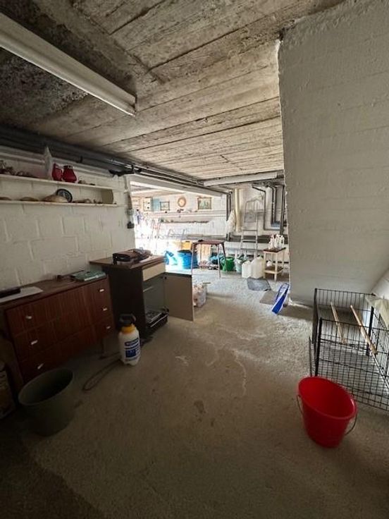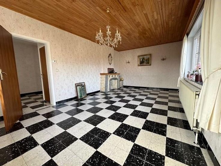 Ce bien est vendu par internet à partir du 17/02/2025 jusqu'au 25/02/2025. Maison 4 façades avec garage et jardin : Superficie habitable : de (100m²) Composition : Sous-sol: Garage, 2 Caves Rez-de-chaussée : Hall d'entrée , WC , Living , Cuisine avec double évier, taque, four et frigo, Arrière cuisine/buanderie. 1 Chambre, 1 Salle de douche Grenier : Grenier aménageable Extérieur : Terrasse, Jardin avec cabane de jardin Chauffage : Central à mazout Toit : Ardoise artificielles bon état Châssis: Double vitrage en pvc Etat général : Bon état général à rafraichir Visites sur rendez-vous. Pour tout renseignement, téléphoner à l'étude au 081/22.01.57.