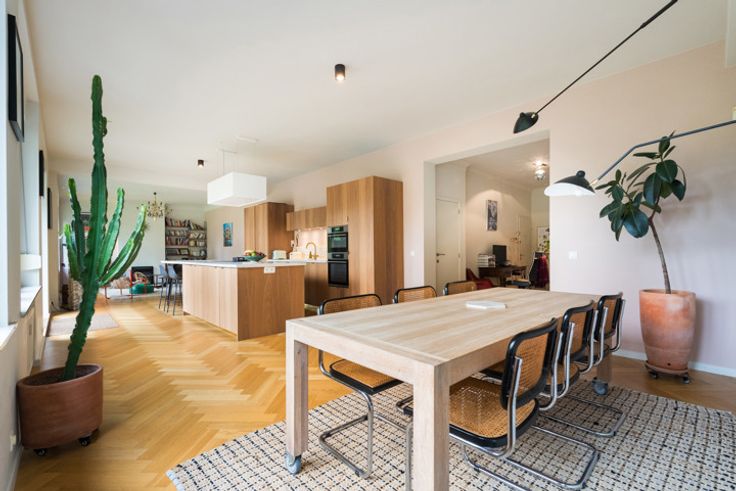 UCCLE, tussen de Bascule en de Place Guy d'Arezzo, een duplex appartement (5 slp./3 badk./kantoor) van ± 331 m² (volgens PEB) met een mooie tuin op het westen. Het bestaat uit: Op de begane grond: Inkomhal, tv-kamer van ± 18 m² (of kantoor), ruime en lichte ontvangstruimten van ± 70 m² met eetkamer, woonkamer met functionele open haard, Amerikaanse keuken en toegang tot het terras van ± 30 m² dat leidt naar de tuin van ± 200 m². Nachthal met garderobe en apart toilet, slaapkamer nr. 1 ± 21 m² met badkamer, inbouwdressing, wasruimte. In de souplex: Nachthal met opbergkasten, slaapkamer nr. 2 ± 14 m², slaapkamer nr. 3 ± 11 m², slaapkamer nr. 4 ± 11,5 m², douchekamer, apart toilet, slaapkamer nr. 5 ± 17,2 m², badkamer. Verder: 2 Kelders - Veiligheidsdeur - Intercom - Alarm - Collectieve gascondensatieketel (2012) - Dubbel glas hout/PVC (±2004) met rolluiken - Privé overdekte parkeerplaats (50.000 €) - 1 personeelskamer - Lift volgens normen - EPC E - R.U. in uitvoering - Elektriciteit moet worden aangepast aan de normen. Dit pand zal u zeker verleiden door de kwaliteit van de afwerkingen, de buitenruimtes en de uitstekende locatie! Te bezichtigen exclusief met L&P!