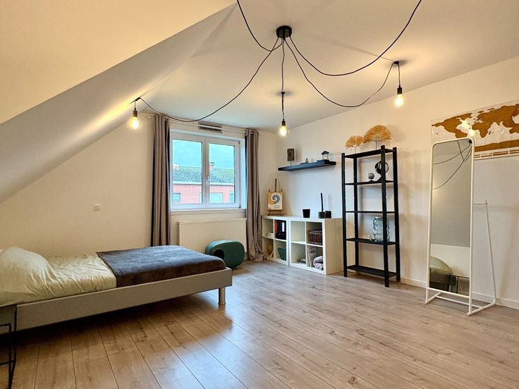 Alleenstaande woning met 5 slks en inpandige garage in rustige/groene omgeving. De Molenwieklaan is een van de rustigste buurten uit Kuurne. Groen, doodlopende straat, voldoende parking, bereikbaar,.. Deze woning is in het jaar 2009 compleet gerenoveerd. Letterlijk een verdiep erop! Zo heeft deze woning momenteel een gelijkvloerse slaapkamer met bureau/dressing en badkamer (hoekbad, inloopdouche, wastafel,..). Verder is de leefruimte achteraan met zicht over tuin en bos/paardenweide. De openkeuken is volledig voorzien van alle toestellen en heeft een zeer praktische berging. Deze ligt tussen de garage en de keuken. Het verdiep bevat 4 echt, echt ruime slaapkamers met centraal op de gang een douchekamer. Apart is het toilet op het verdiep. De tuin is voorzien van een leuk terras, fietsberging en tuinberging. PLUSPUNTEN: + EPC B met 15 zonnepanelen en zonneboiler + ligging, ligging, ligging + gelijkvloers wonen mogelijk