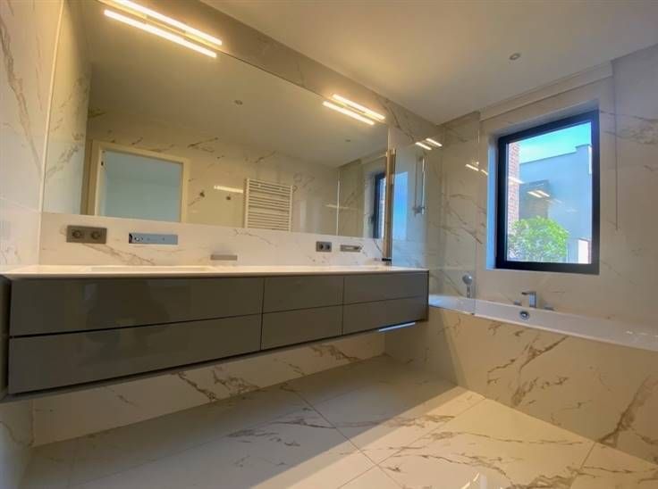 IXELLES, à mi chemin entre la place Brugmann et le quartier du Châtelain, dans un immeuble récent, sublime appartement contemporain de +/- 220m² + terrasse de +/- 16m², comprenant: ascenseur privatif, élégant hall d'entrée, vestiaire, wc séparé, vaste living (en parquet) donnant accès à la terrasse, cuisine BULTHAUP full équipée + cellier, 3 chambres avec dressings + placards sur mesures, 3 salles d'eaux, buanderie, cave. Possibilité de louer deux emplacements de parking (175€/mois/parking). Double vitrage partout, chaudière individuelle, système d'alarme. Local poubelle, local vélo, local poussette. Libre le 15 avril 2025. Pour conditions et visites: 02 344 88 84 / rent@tribel-immo.be / www.tribel-immo.be (PEB: B)