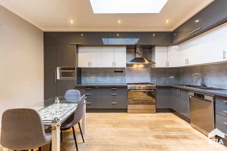 Ben je op zoek naar een gerenoveerde en energiezuinige woning (215m²) met 5 slaapkamers, 2 badkamers, een zuidwest georiënteerde tuin en inpandige garage? Gevonden! Deze perfect instapklare woning bevindt zich in een rustige straat aan de stadsrand van Aalst, nabij invalswegen & E40, drink-en eetgelegenheden, winkels en het Stadspark. In minder dan 10 minuten bevindt u zich stapvoets in het bruisende centrum. Naast haar energiezuinigheid (energielabel B, zonneboiler, vloerverwarming, isolatie...), werd deze woning in 2013 van A tot Z onder handen genomen. Zo werden de daken, ramen, vloeren, buizen, ramen en pleisterwerk vernieuwd waardoor de woning asbestvrij is. Vergeet ook de conforme elektrische keuring niet!  Indeling: De inkomhal verleent toegang tot de garage met automatische poort en wasplaats en de eerste badkamer met inloopdouche, bad, toilet en lavabo. Verder vinden we de eerste slaapkamer (momenteel bureau van 11m²), de geinstalleerde keuken en de leefruimte (32m²). Dankzij de grote raampartijen heb je zicht op en toegang tot de tuin met terras. Naast de woonkamer vinden we nog een overdekte koer voor extra stockageplaats. Op de eerste verdieping vinden we 2 slaapkamers (18m² & 17m²) en een apart toilet. Op de tweede verdieping vinden we de tweede, moderne badkamer en nog eens 2 slaapkamers (16m² & 12m²)