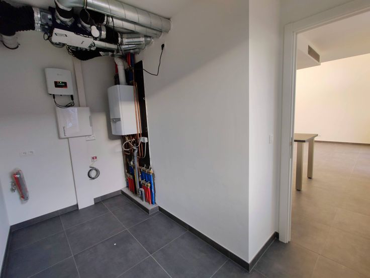 Voorzien van zonnepanelen (zowel op eigen teller als op de gemeenschappelijke teller). EPB-waarde: 14