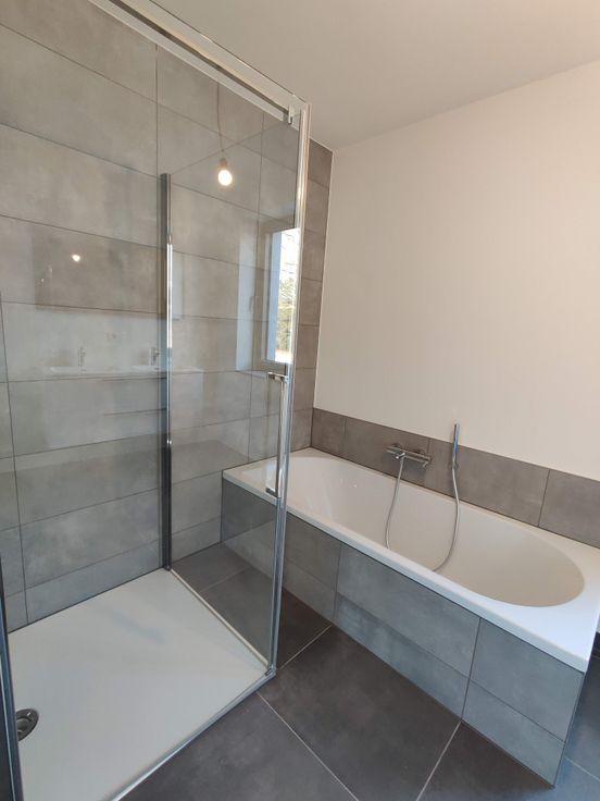 wc, badkamer met bad en douche, slaapkamer, open keuken en leefruimte, berging