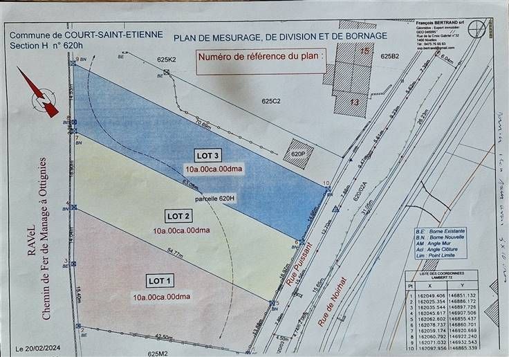 Onderaan de rue de Noirhat, in een smalle eenrichtingsstraat en aan de oever van de Ravel, zijn hier drie percelen van elk 10 are die we je aanbieden voor de bouw van je toekomstige huis. Perceel 1: breedte voorkant 13,88 m, breedte achterkant 29,44 m, diepte links 42,50 m, diepte rechts 54,77 m. Prijs € 189.000. Kavel 2: breedte voorkant 16,97 m, breedte achterkant 18,90 m, diepte links 54,77 m, diepte rechts 63,08 m. Prijs € 199.000. Perceel 3: frontbreedte 14,96 m, achterbreedte 14,53 m, linkerdiepte 63,08 m, rechterdiepte 70,69 m. Prijs € 219.000. De ligging is bevoorrecht: op 1 min van de RN 25 (Louvain La Neuve-Nivelles), op 7 min van de E411 (Namen-Brussel) en de scholen en winkels van het hof. .