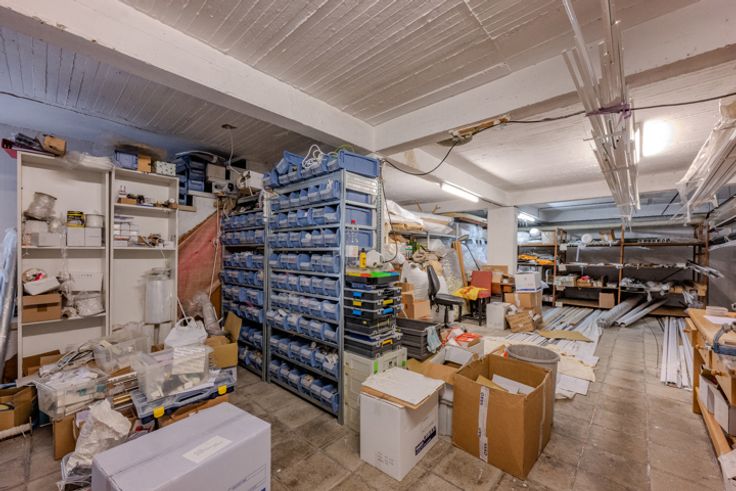 Daarnaast beschikt het pand over handige opslagruimtes. Er is een kantoor, keukentje en berging van ongeveer 5 m² en een kelder van circa 15 m².