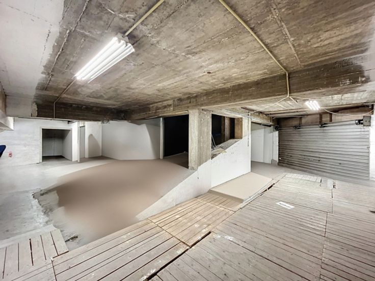 Het bestaat uit een begane grond van ongeveer 300 m² en een kelder met een opslagruimte van ongeveer 200 m².