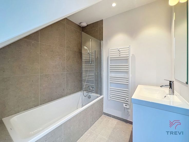 AUDERGHEM, in de universiteitswijk van de VUB, dicht bij alle voorzieningen (supermarkten, openbaar vervoer, Europese school, bars) en belangrijke uitvalswegen. Schitterend, zeer licht en ruim, volledig gerenoveerd huis met ongeveer 250m² woonoppervlak. Indeling: 1 inkomhal, een fietsruimte, 1 zeer grote woonkamer, 1 volledig uitgeruste open keuken, 5 slaapkamers, elk met eigen douchekamer en bergruimte, 6 WC's, verschillende grote terrassen, ± 80m² tuin, polyvalente ruimte onderaan de tuin (kantoor, sportruimte, werkplaats, enz.), wasplaats, verschillende kelders. Kosten €40 (verzekering ter dekking van verhaalsverlies en boiler en boileronderhoud). Perfect voor een appartement of een gezin. Alle oppervlaktes zijn ter informatie. PEB : D. INFO & BEZOEKEN TREVI 02/340.24.94. Bezoek ook onze Facebook pagina TREVI Location ! De afmetingen zijn ter informatie.
