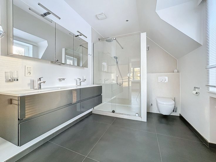 A l’étage, un espace de ±12m² surplombant le hall d'entrée s’ouvre sur les parties nuit. Vous trouverez la suite parentale de ±32m² avec son dressing et sa salle de douche, quatre autres chambres respectivement de ±10 - 11 - 16 et 16m² se partageant une salle de douche et une salle de bains et pour finir une toilette séparée.