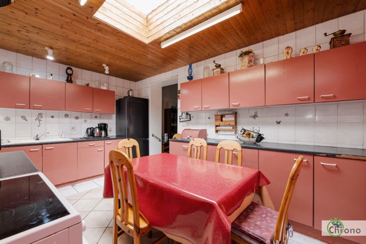 Votre bureau IMMO CHRONO a le plaisir de vous proposer en exclusivité cette spacieuse et lumineuse maison à vendre. Offrant un grand potentiel d'aménagement, cette maison est idéale pour les familles! Elle se compose comme suit: hall d'entrée desservant un living de +/- 45 m2, une cuisine de 13 m2, une salle de bains de +/- 11m2 avec douche et wc. Au 1er étage, un hall de nuit, deux chambres (23m2 & 12m2). le 2ème étage offre un grand grenier de plus de 40 m2 permettant la création de deux à trois chambres supplémentaires. Au sous-sol une cave sous la partie living. l'Extérieur offre une terrasse couverte, un jardinet clôturé et un atelier avec grenier de +/- 25 m2. CONFORT : NOUVELLE TOITURE , chauffage central au gaz, châssis double vitrage en PVC, .... Située à proximité des facilités, cette maison vous séduira par ses volumes et les multiples possibilités d'aménagement pour en faire un véritable cocon familial! Ne tardez pas à prendre rendez-vous pour la visiter! Prix: faire offre à partir de 145.000€ (sous réserve d'acceptation des propriétaires vendeurs). Contactez notre bureau au 064/77.54.44. pour planifier une visite ou pour tout complément d'information. Publicité à caractère indicatif et non contractuel.